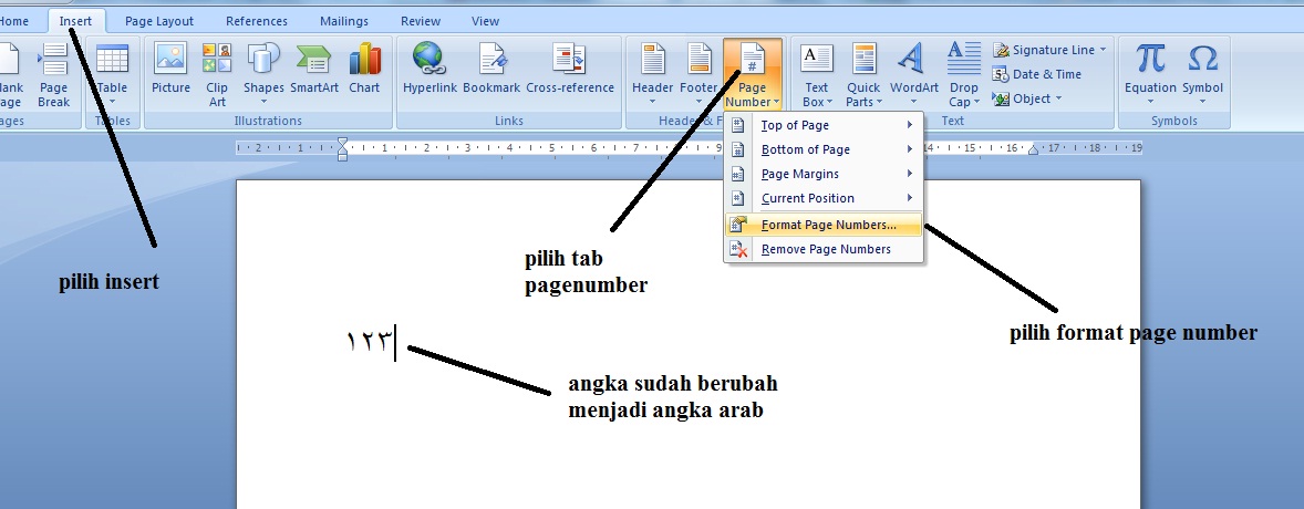 Membuat Halaman Word 2007 Dengan Angka Arab